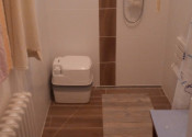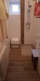 Schodiskom sa dostaneme na 1. poschodie< kde sú 3 izby a miestnosť s vývodmi vody a odpadu, kde je možnosť vybudovania druhej kúpeľne.