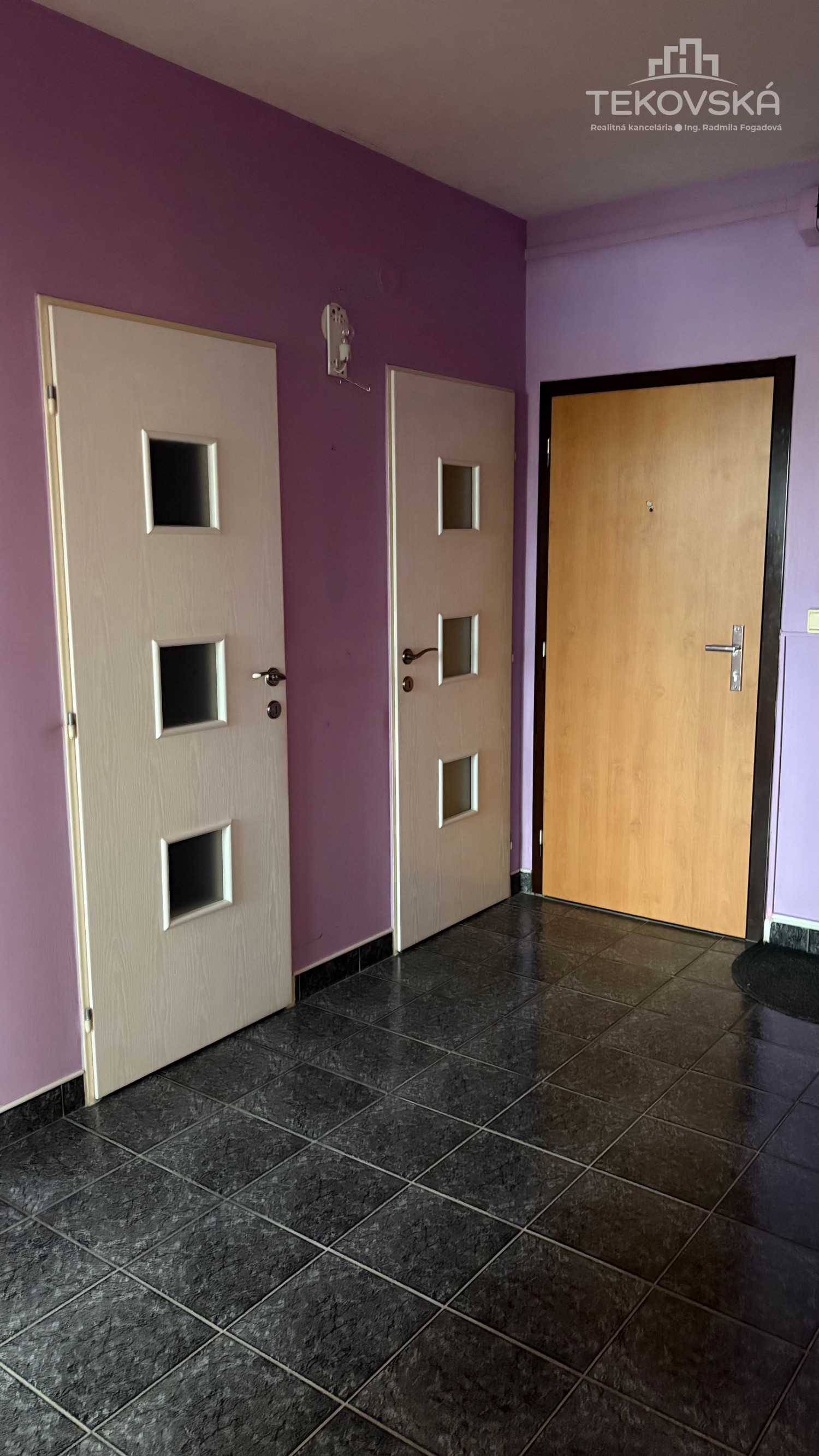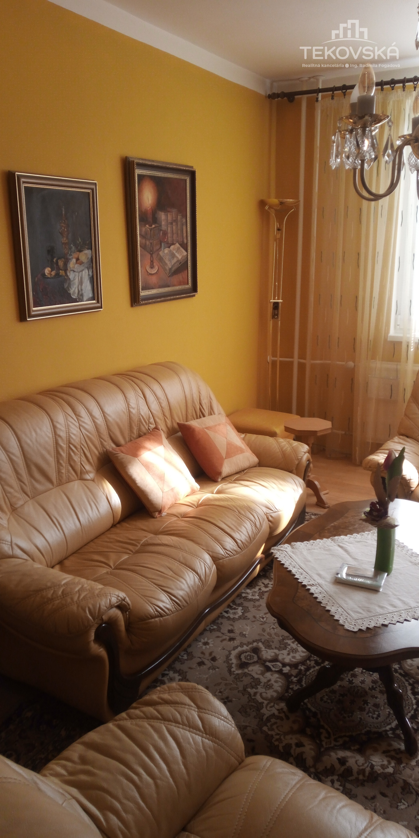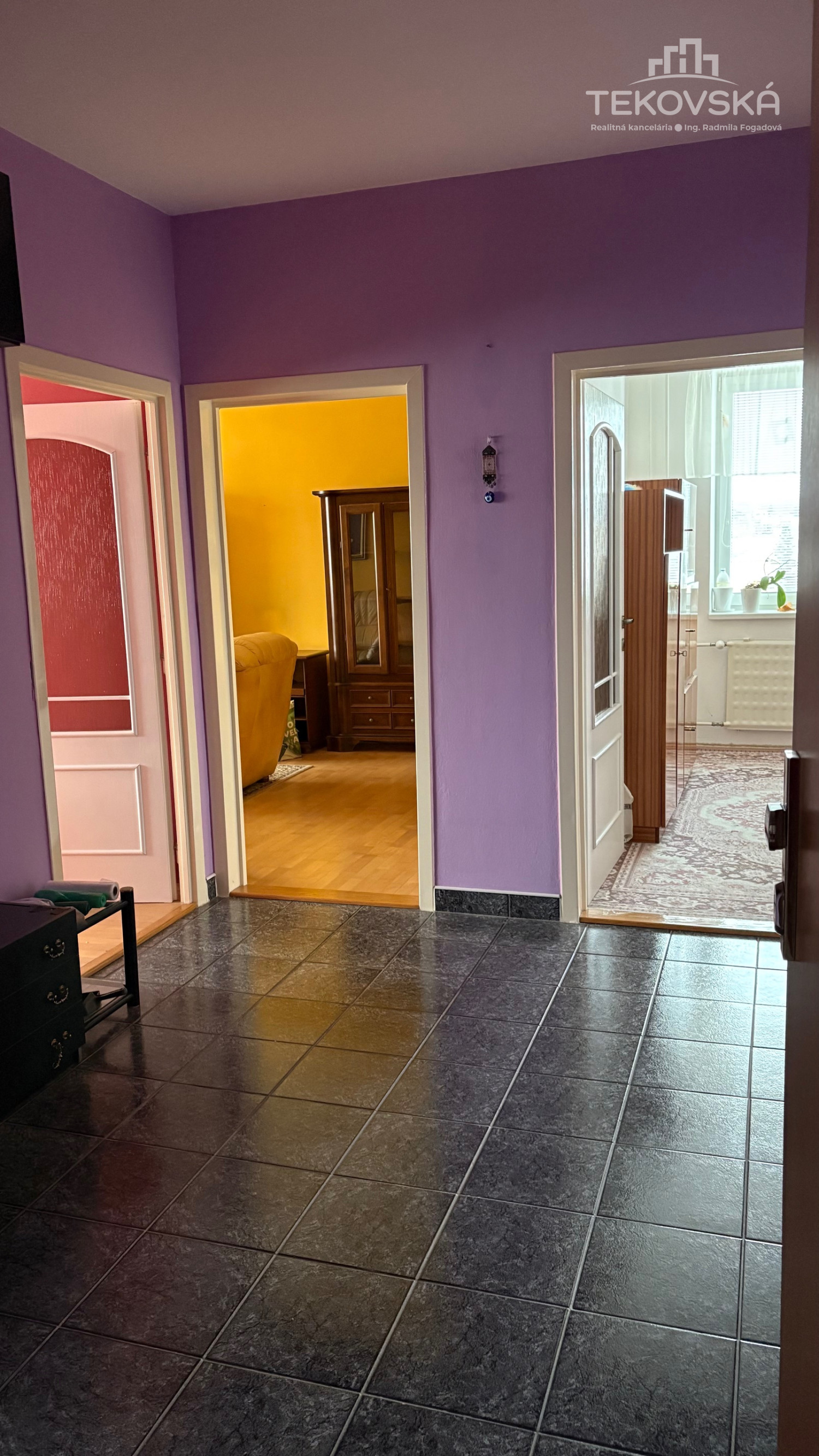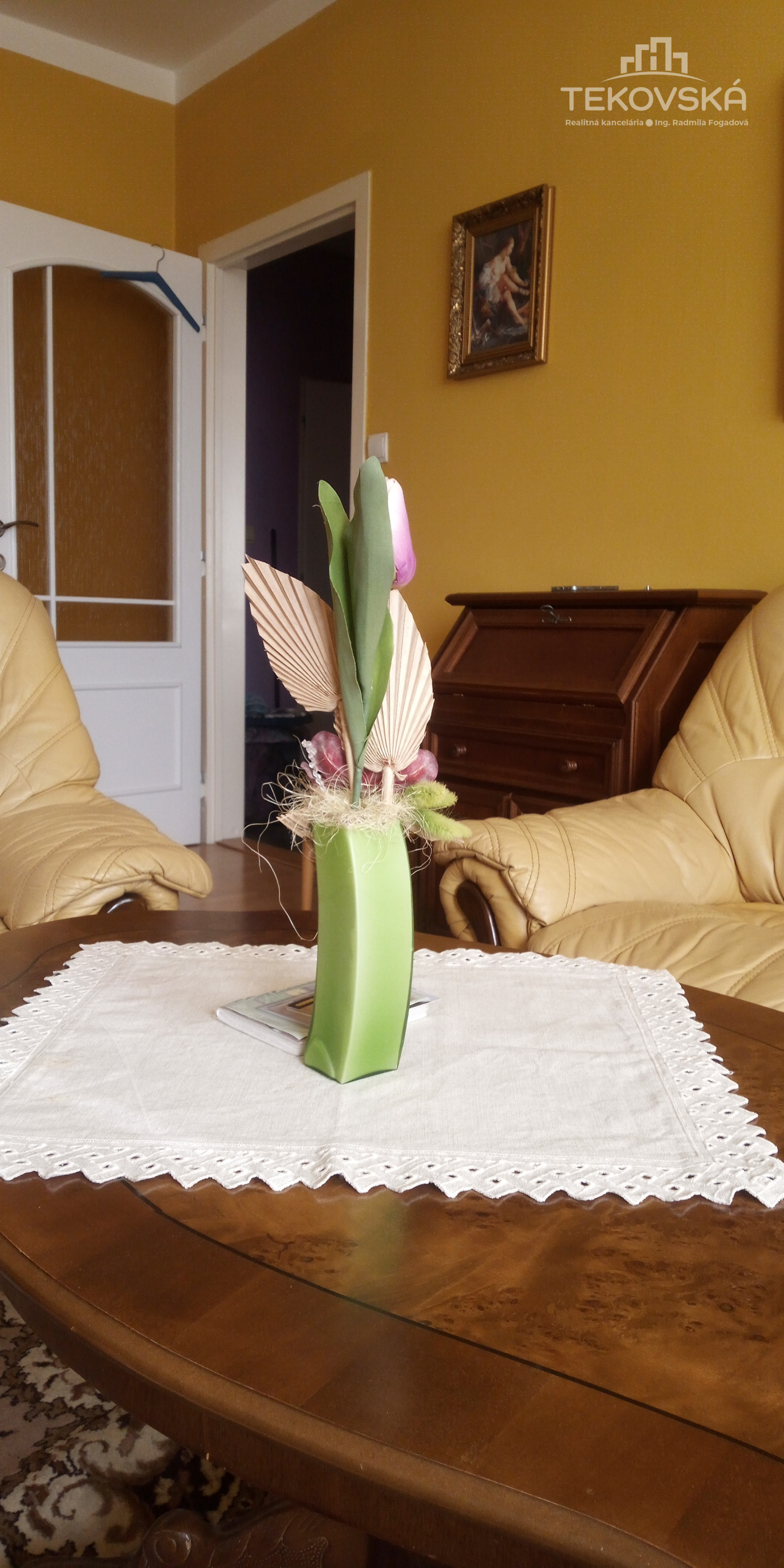 Byt je dispozične riešený- vstupná chodba, samostatné WC, kúpeľňa, pri kuchyni je špajza, vchod do detskej izby, z chodby: vchod do spálne, obývacej izby a druhej detskej izby. V byte sú plastové okná, stierky, kuchyňa a kúpelňa prešla reškonštrukciou staršieho dáta, byt je však v súčasnom stave obývateľný a rekonštrukcia nie je nevyhnutná okamžite. V 2 izbách je plávajúca podlaha. K bytu prináleží pivnica.Vo fotodokumentácii sú použité návrhy riešenia interiéru.