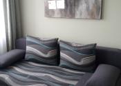 Podlahy sú riešené v izbách - plávajúca podlahakuchyńa, ostatné miestnosti - dlažba.